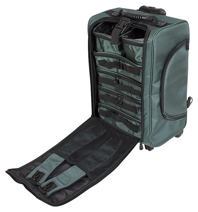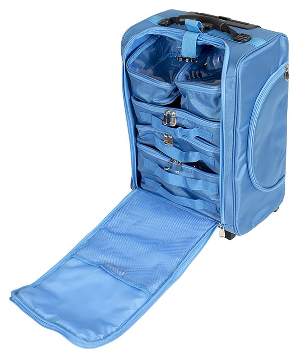 Чемодан Мэдисон&Co VZ-46 предназначен для хранения и транспортировки рабочих инструментов, приборов и расходных материалов мастера визажа в салонах красоты, косметологических центрах и на выездных сеансах. Модель оснащена четырьмя горизонтальными и двумя вертикальными вместительными съемными органайзерами, внешними карманами, четырехколесным шасси, подножками, ручками для перемещения. Корпус выполнен из качественной износостойкой влагозащитной ткани, выдвижная ручка изготовлена из металла с пластиковой накладкой, колеса – из пластика с резиновыми шинами. Модель доступна в 3 альтернативных цветовых исполнениях. Особенности: