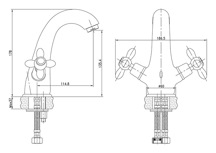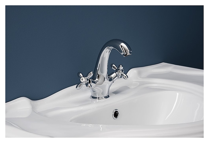 Смеситель для раковины Aquanet Opera SD98903 предназначен для использования в ванных помещениях для подачи горячей и холодной воды. Серия Opera выполнена в классическом стиле. Модель оснащена керамической кран-буксой, обеспечивающей плавный ход вентилей смесителя и открытие/закрытие потока воды при половине оборота. Изделие выполнено из высококачественной латуни, отличающейся прочностью, долговечностью и устойчивостью к перепадам температур. В комплект поставки входит подводка. Особенности: