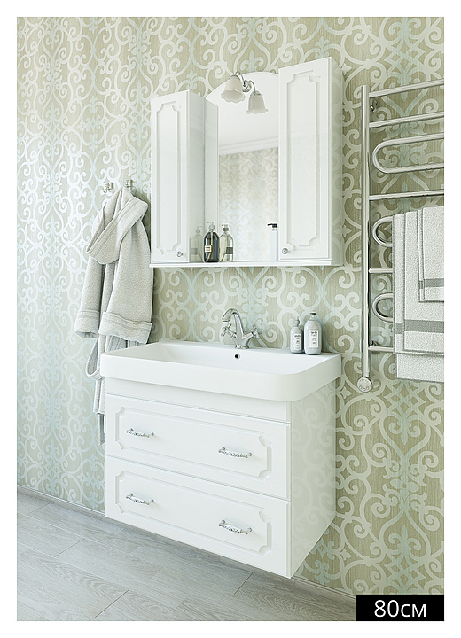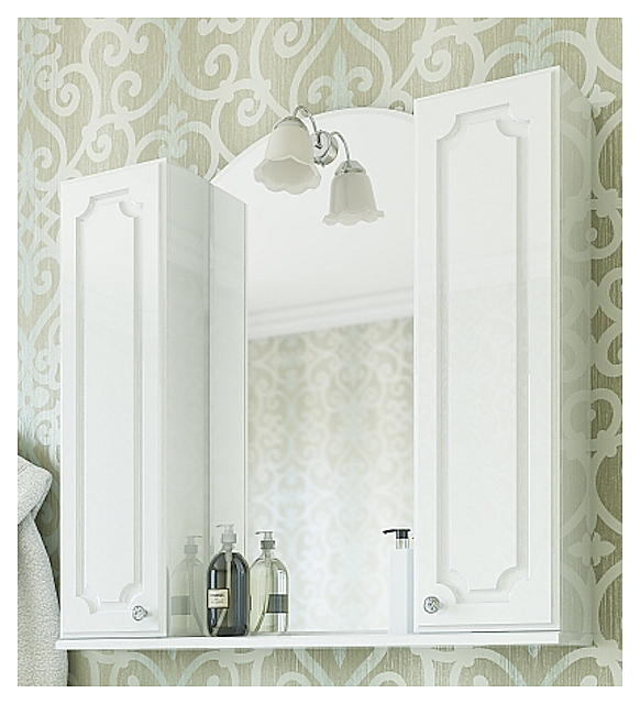 Зеркало Sanflor Ксения выполнено в классическом стиле. Благодаря изысканному стилю мебель станет украшением любой ванной комнаты. Модель оснащена 2 шкафчиками и светильником. Каркас выполнен из влагостойкой ЛДСП с эмалевым покрытием. Зеркало является частью гарнитура для ванной комнаты Ксения. Особенности: