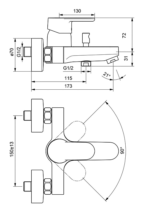 Смеситель для ванны с душем Ideal Standard VITO B0412