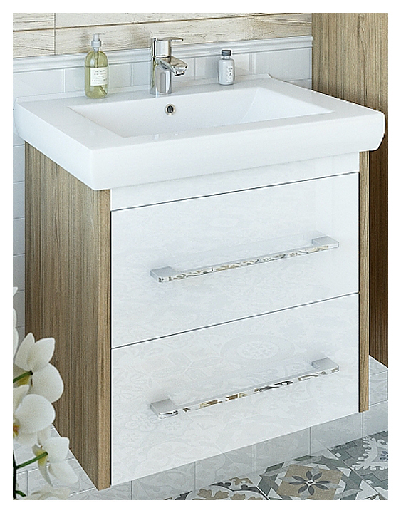 Тумба с раковиной Sanflor Ларго 2 70 см подвесная, вяз швейцарский