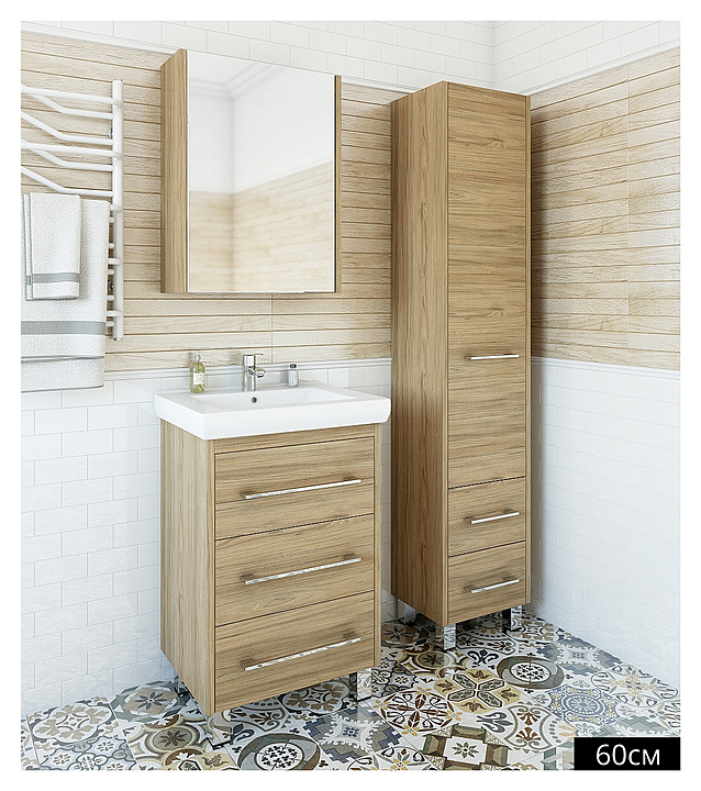 Тумба Sanflor Ларго выполнена в скандинавском стиле. Благодаря простоте и стильному внешнему виду мебель станет украшением любой ванной комнаты. Тумба оснащена 2 выдвижными ящиками с механизмом плавного закрытия, раковина имеет слив-перелив и одно отверстие для смесителя, расположенное по центру. Корпус мебели выполнен из влагостойкой ЛДСП с эмалевым покрытием. В комплект входит раковина Kirovit Фостер 80. Тумба является частью гарнитура для ванной комнаты Ларго. Особенности: