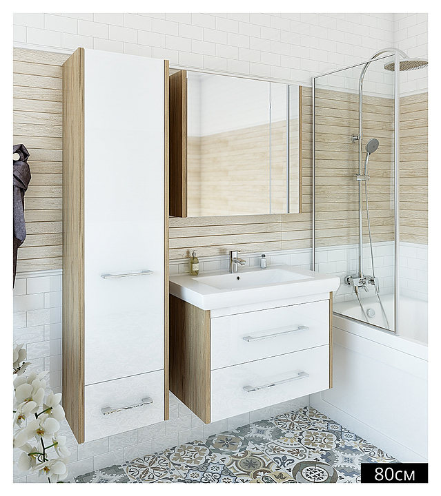 Тумба с раковиной Sanflor Ларго 2 80 см подвесная, вяз швейцарский