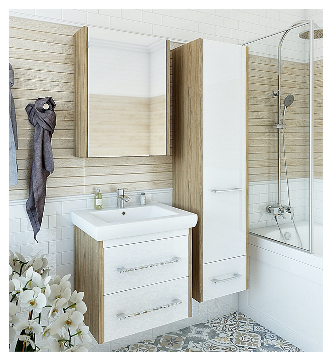 Тумба с раковиной Sanflor Ларго 2 70 см подвесная, белая, вяз швейцарский