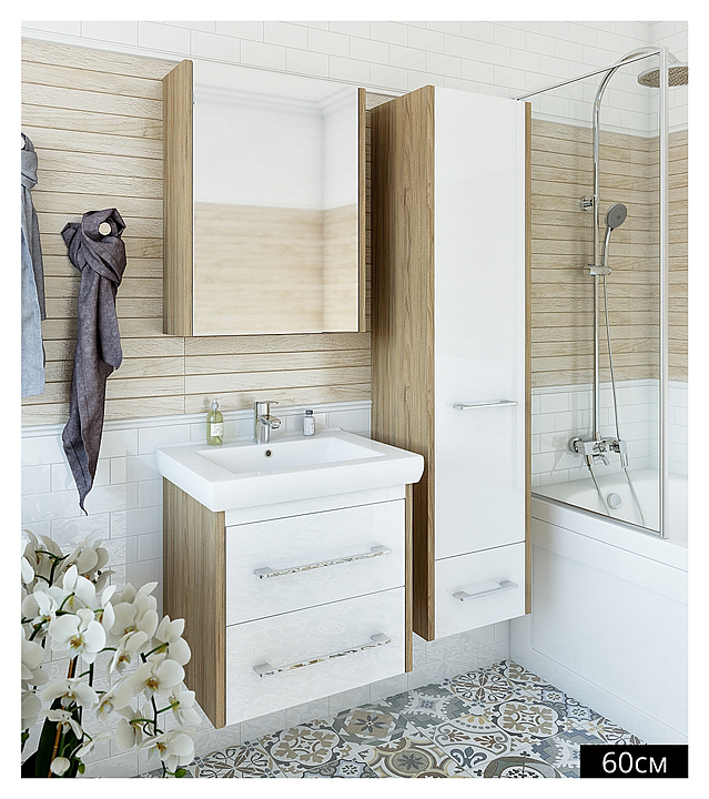 Гарнитур Sanflor Ларго 2 60 см, 4 предмета, подвесной, с правост. зеркалом, с левост. пеналом, белый, швейцарский вяз