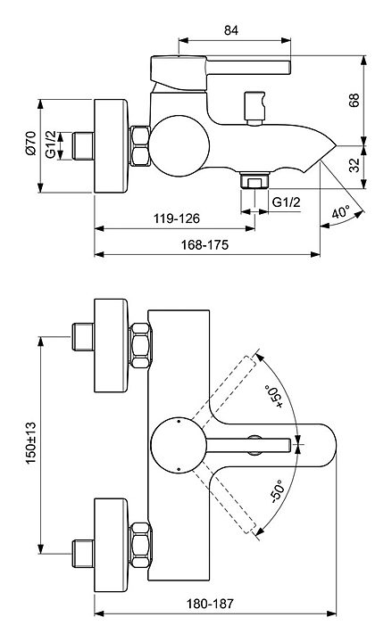 Смеситель для ванны с душем Ideal Standard CERALINE BC199XG