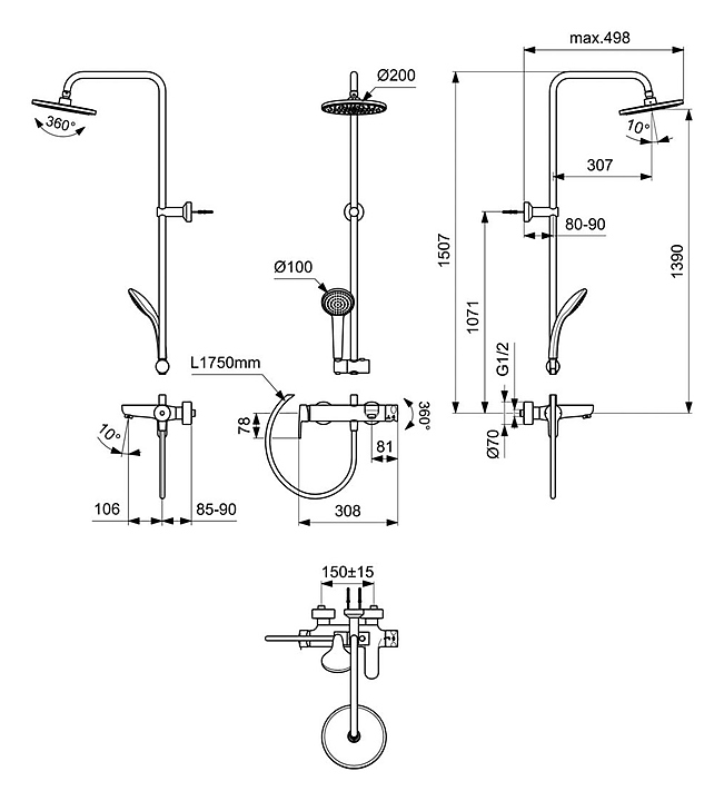 Душевая стойка Ideal Standard CERAFINE O BC749XG используется в ванных комнатах. Модель оснащена круглой лейкой и круглым верхним душем. Стойка оснащена функцией ограничения максимальной температуры горячей воды для предотвращения ожогов. Верхний душ выполнен из легкого пластика. В комплект поставки входит смеситель. Особенности: