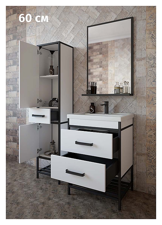 Гарнитур Sanflor Норд 60 см, 4 предмета, с правост. пеналом, белый матовый