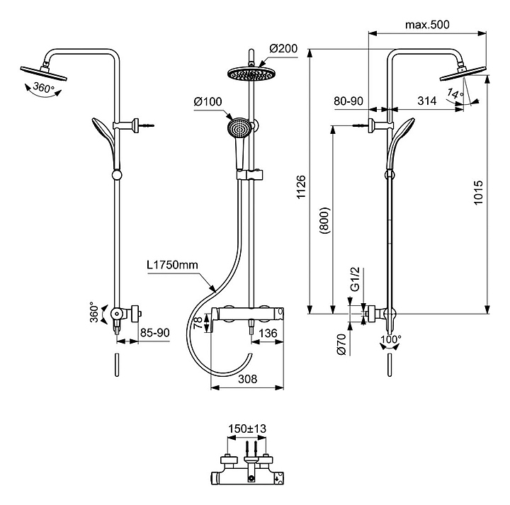 Душевая стойка Ideal Standard CERAFINE O BC750XG используется в ванных комнатах. Модель оснащена круглой лейкой и круглым верхним душем. Стойка оснащена функцией ограничения максимальной температуры горячей воды для предотвращения ожогов. Верхний душ выполнен из легкого пластика. В комплект поставки входит смеситель. Особенности:
