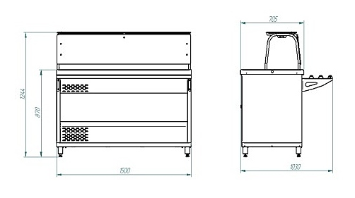 Прилавок-витрина МХМ ПВХЭ150 используется в составе линии раздачи Шеф 1500 для демонстрации и кратковременного хранения готовых блюд, продуктов питания, напитков и посуды на предприятиях общественного питания и торговли. Модель оснащена охлаждаемой столешницей, полкой и диодной подсветкой. Корпус выполнен из нержавеющей стали. Особенности: