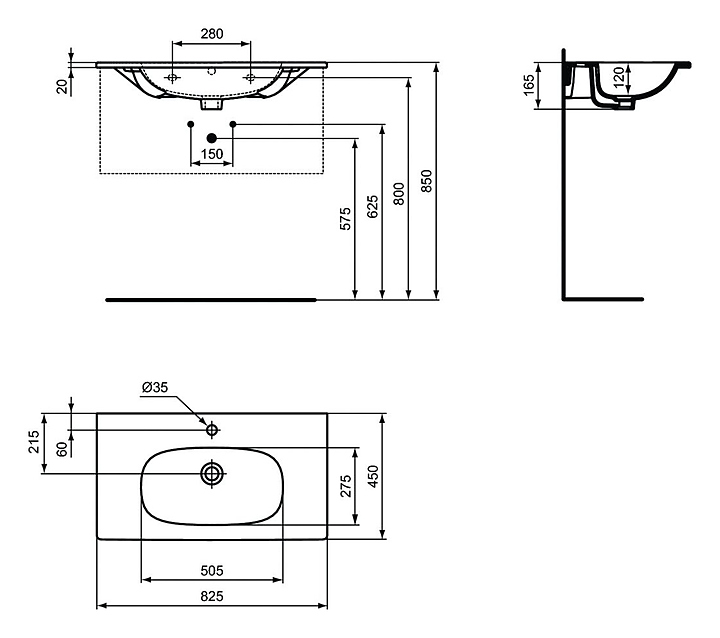 Раковина Ideal Standard TESI T3509V3 82,5х45 см керамика