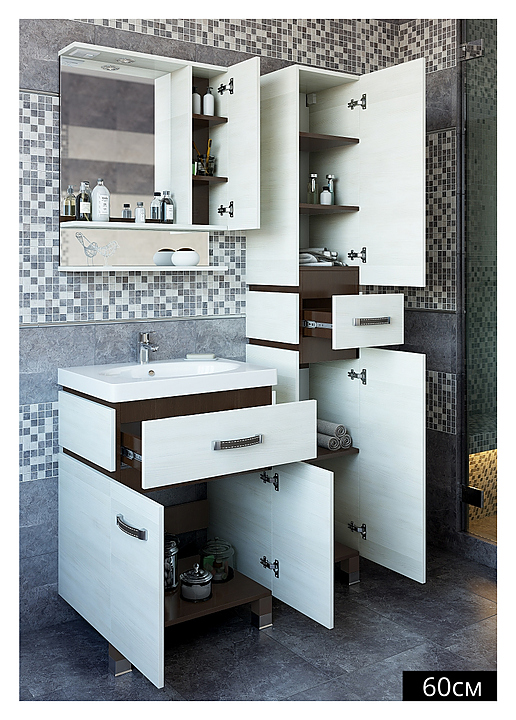 Гарнитур Sanflor Техас 60 см, 4 предмета, с левост. зеркалом, с левост. пеналом, венге, северное дерево светлое