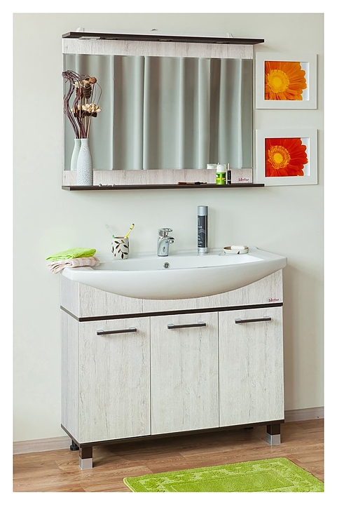 Гарнитур Sanflor Толедо выполнен в современном стиле. Благодаря четким линиям в сочетании с богатой текстурой мебель станет украшением любой ванной комнаты. В комплект входит тумба под раковину, раковина Kirovit Элеганс 105, зеркало и правосторонний пенал. Тумба оснащена 3 дверцами, зеркало - полочкой и подсветкой, пенал - 2 дверцами. Раковина имеет одно отверстие для смесителя, расположенное по центру. Корпус мебели выполнен из влагостойкой ЛДСП. Смеситель в комплект поставки не входит и приобретается отдельно. Особенности: