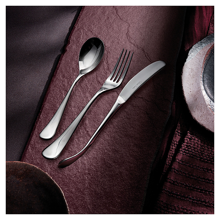 Набор столовых приборов ROBERT WELCH Honeybourne используется на предприятиях общественного питания и торговли, а также в частных домах и квартирах. Изделия подходят для мытья в посудомоечной машине. Приборы изготовлены из специально закаленной нержавеющей стали 18/10 с зеркальной полировкой, чтобы режущая кромка была максимально тонкой. В набор входят: 12 столовых ножей, 12 столовых вилок, 12 суповых ложек, 12 боковых ножей, 12 боковых вилок, 12 десертных ложек, 12 английских чайных ложек. Особенности:
