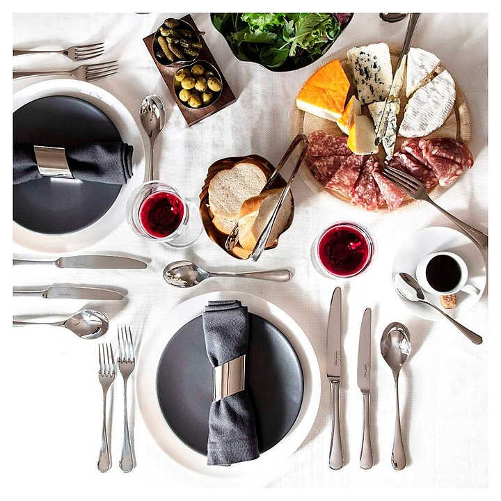 Набор столовых приборов ROBERT WELCH Radford Bright используется на предприятиях общественного питания и торговли, а также в частных домах и квартирах. Изделия подходят для мытья в посудомоечной машине. Приборы изготовлены из специально закаленной нержавеющей стали 18/10 с зеркальной полировкой, чтобы режущая кромка была максимально тонкой. В комплект поставки входит 6 столовых ножей, 6 столовых вилок, 6 суповых ложек, 6 боковых ножей, 6 боковых вилок, 6 десертных ложек, 6 английских чайных ложек. Особенности: