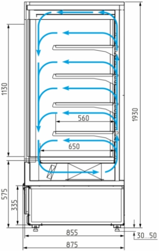 Холодильная горка Carboma FC20-08 VM 0,7-1 Light используется на предприятиях общественного питания и торговли для охлаждения, кратковременного хранения, демонстрации и продажи напитков, мяса, птицы, колбасных, молочных и гастрономических изделий. Модель оснащена энергосберегающим стеклопакетом, распашной дверью с петлями с доводчиком, 4 полками с кронштейнами c возможностью расположения под углом и изменения высоты, ночной шторкой и регулируемыми ножками высотой от 30 до 50 мм. Корпус выполнен из окрашенной стали с ППУ изоляцией, двери - из каленого низкоэмиссионного стекла толщиной 6 мм. Особенности: