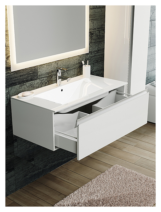 Тумба Sanvit Авеню-1 100 выполнена в современном стиле. Благодаря подвесной конструкции изделие не занимает много места и обеспечивает легкую уборку в ванной комнате. Модель оснащена выдвижным ящиком с функцией полного выдвижения, плавного и бесшумного закрывания и системой разделения внутреннего и подсифонного пространства. Корпус изделия выполнен из влагостойкой МДФ в пленке ПВХ белого цвета, которая обеспечивает изделию привлекательный внешний вид, а также износостойкость и долговечность. Тумба приобретается только в комплекте с раковиной Sanvit r9100d. Дополнительные характеристики: