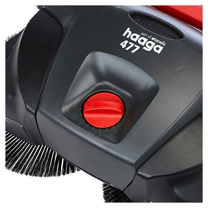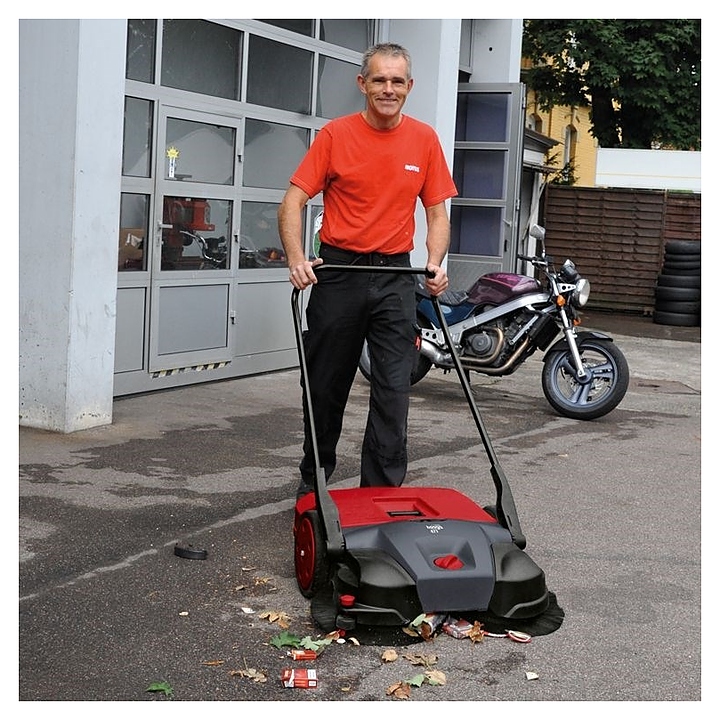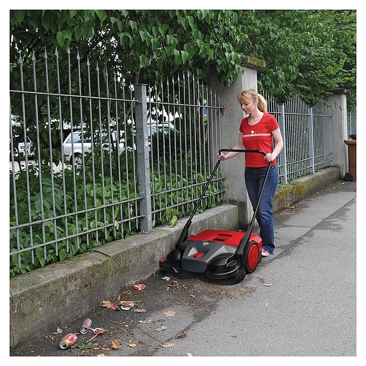 Механическая подметальная машина Starmix Haaga 477 Profi предназначена для регулярной профессиональной уборки на производственных объектах, автостоянках, в парках, мастерских, складских помещениях и других территориях больших площадей. Модель оснащена головкой с цилиндрической щеткой, 2 боковыми коническими дисковыми щетками, направляющим язычком, съемной ведущей рукоятью, углублением для переноски и устойчивым пятиколесным шасси. Корпус изготовлен из ударопрочного пластика, рукоять – из металла, ведущие колеса с резиновыми шинами. Особенности: