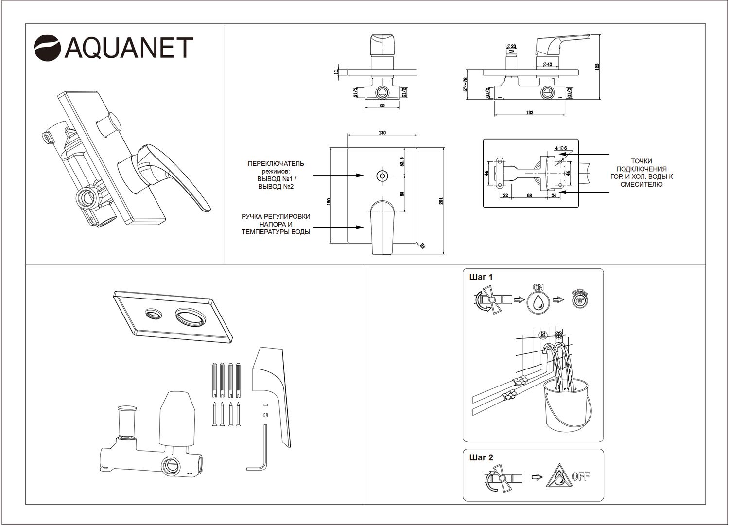 Смеситель для душа Aquanet Static Black AF330-51B предназначен для использования в ванных помещениях для подачи горячей и холодной воды. Модель оснащена керамическим картриджем, обеспечивающим плавный ход рычага смесителя, контроль и точность при выборе напора и температуры воды. Изделие выполнено из латуни, которая отличается прочностью, долговечностью и устойчивостью к перепадам температуры. В комплект поставки входят скрытая монтажная часть и переключатель. Особенности: