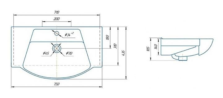 Раковина СаНта Монро 75 75х45 см, санфаянс