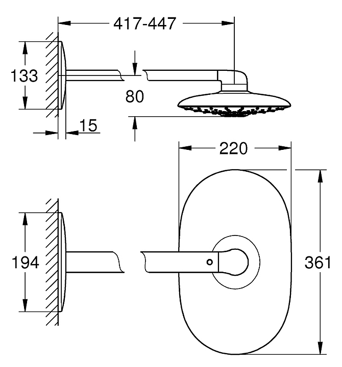 Душ верхний с кронштейном Grohe Rainshower Duo 360 26254000