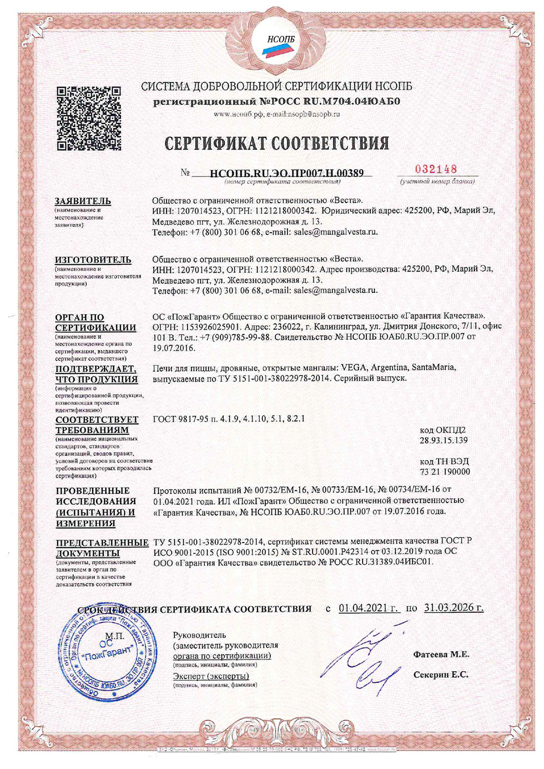 Компания Vesta производит печи-мангалы, открытые мангалы, искрогасители (гидрофильтры), дровяные печи для пиццы, коптильни, производственные столы из нержавеющей стали, кухонные стеллажи, моечные ванны и аксессуары. ENTERO - официальный партнёр