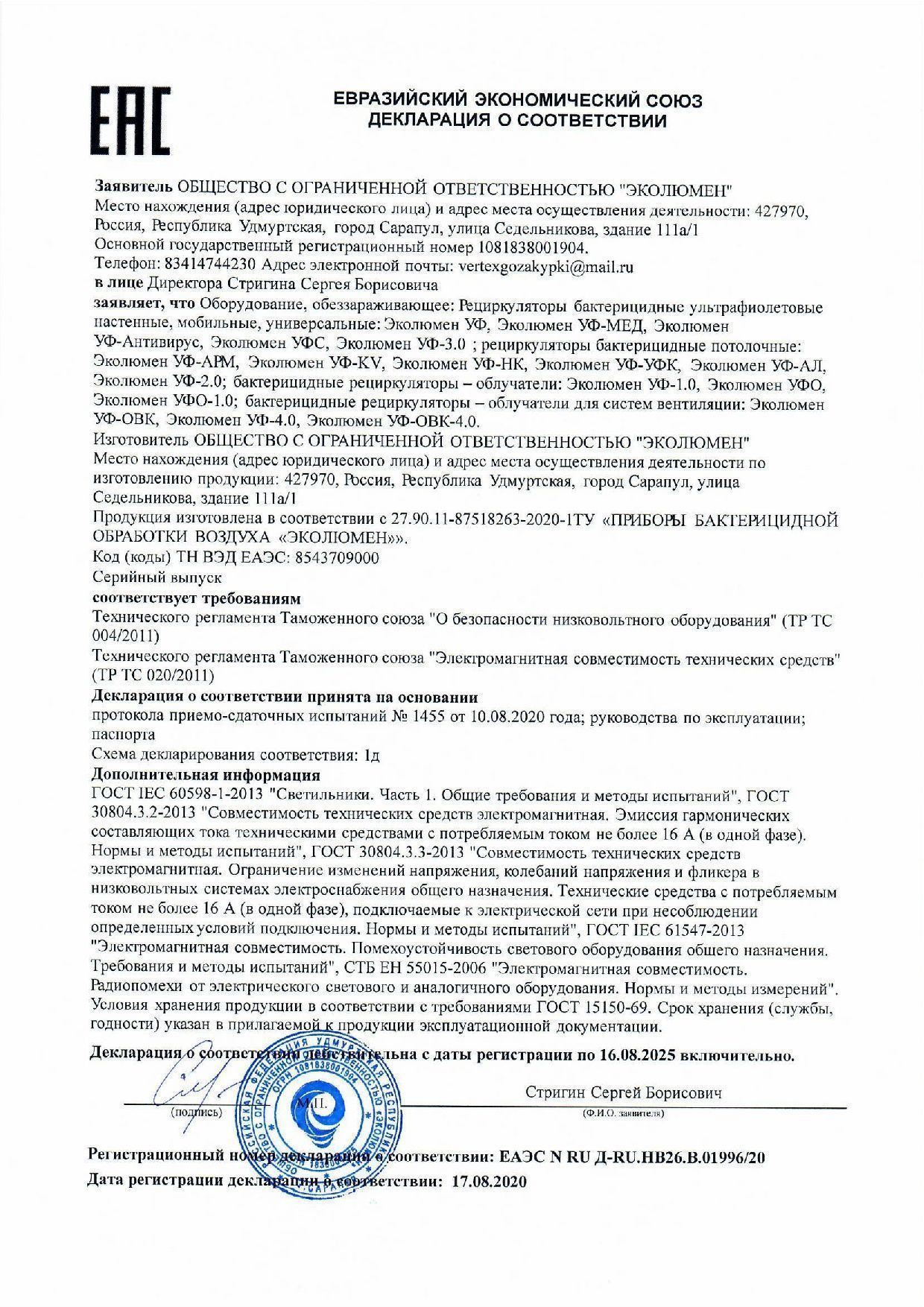 Рециркулятор ECOLUMEN УФ-ARM1-36-30