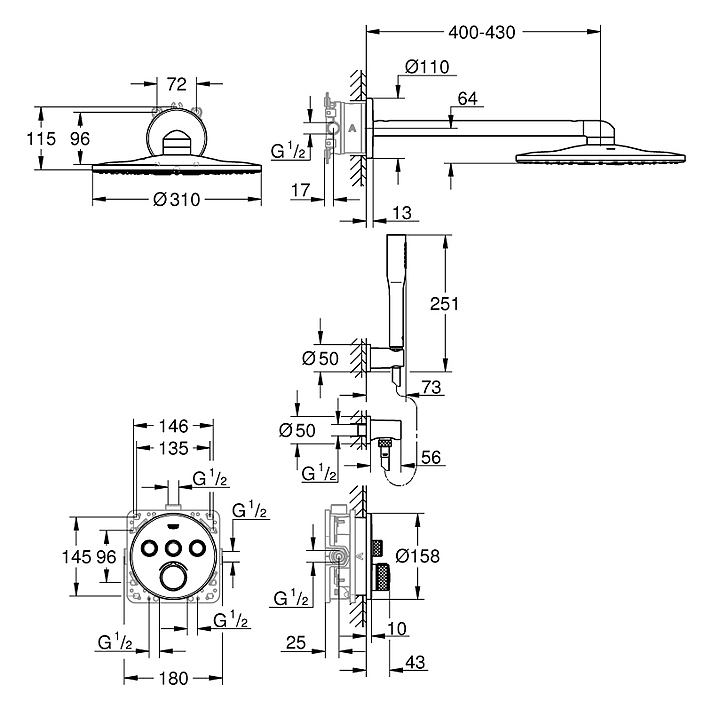 Душевая система с термостатом встраиваемым Grohe Grohtherm SmartControl Perfect 34709000
