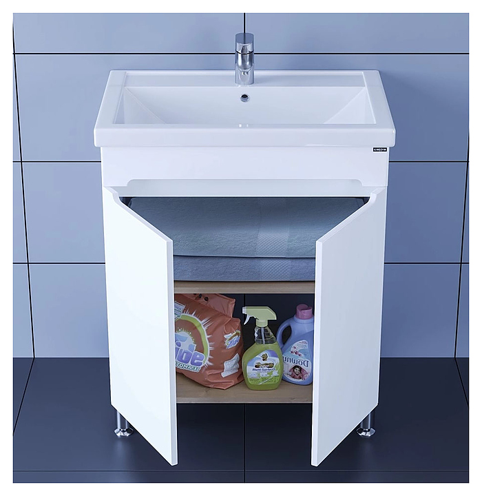 Тумба под раковину СаНта Лондон 70 дополнит интерьер ванной комнаты. Модель оснащена 2 распашными дверцами и ножками, защищающими конструкцию от воздействия влаги в случае намокания пола. Корпус выполнен из влагостойкой ЛДСП, фасад - из МДФ и покрыт пленкой для защиты поверхности от внешних воздействий. Тумба используется вместе с раковиной Фостер 70. В комплект поставки входят 2 хромированные и 2 пластиковые ножки. Особенности: