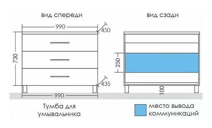 Тумба под раковину СаНта Омега 100 напольная, 3 ящика