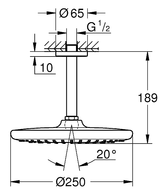 Душ верхний с потолочным кронштейном Grohe Tempesta 250 Cube 26669000