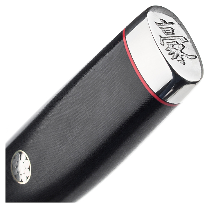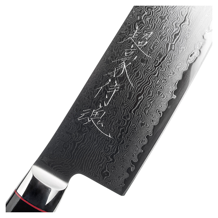 Кухонный нож YAXELL Gyuto YA37200 серии SUPER GOU Ypsilon предназначен для нарезки продуктов на предприятиях общественного питания и торговли и для домашнего применения. Лезвие изготовлено из сверхпрочной порошковой стали SG2 Micro Carbide с обкладками из более мягкой дамасской стали по 96 слоев с каждой стороны, состоящей из хрома и небольшого количества углерода, рукоять - из черного полимерного материала Canvas Micarta на основе льняного полотна и смолы, заклепки рукояти и больстеры - из нержавеющей стали. В комплект поставки входит деревянная ножна и фирменная упаковка. Особенности: