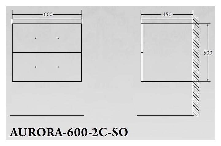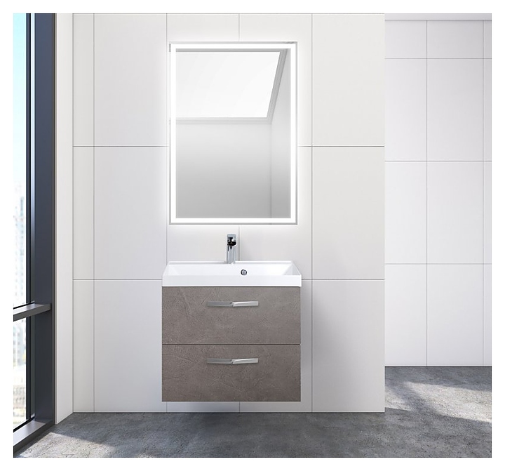 Тумба с раковиной BelBagno AURORA-600-2C-SO-PG + BB600/450-LV-MR-AST + 6831/032 серый камень, черные ручки