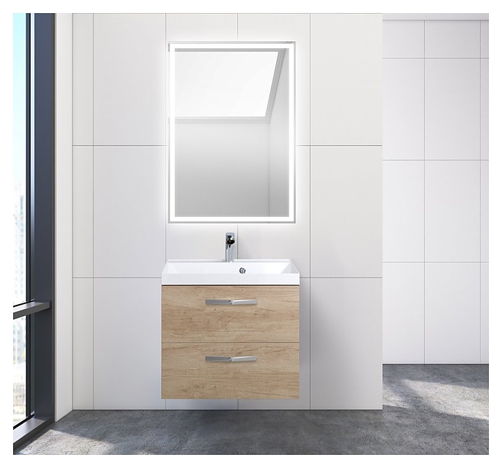 Тумба с раковиной BelBagno AURORA-600-2C-SO-RNN + BB600/450-LV-MR-AST + 8.1135.192160.0270OP дуб небраска натуральный, ручки белые матовые