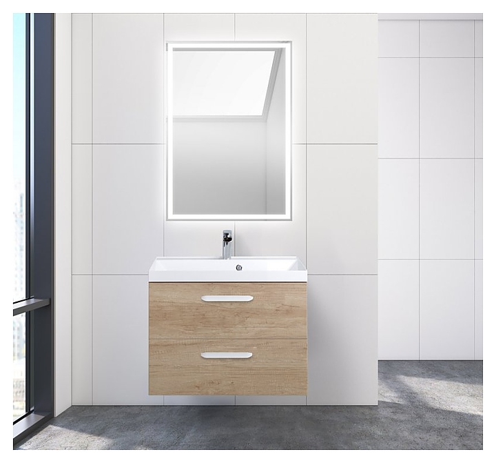 Тумба с раковиной BelBagno AURORA-700-2C-SO-RNN + BB700/450-LV-MR-AST + 8.1135.192160.0270OP дуб небраска натуральный, ручки белые матовые