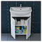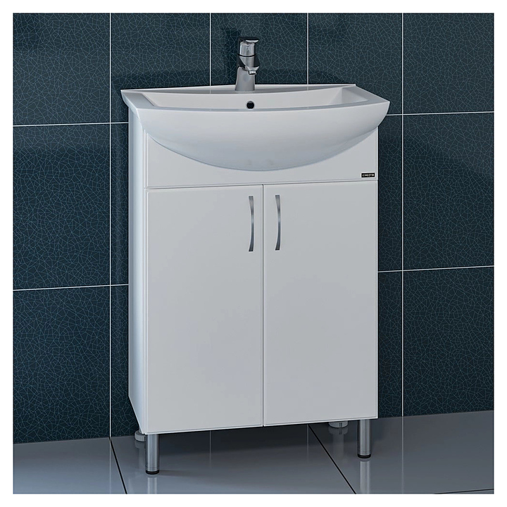 Тумба под раковину СаНта Грация 60 дополнит интерьер ванной комнаты. Модель оснащена 2 распашными дверцами и ножками, защищающими конструкцию от воздействия влаги в случае намокания пола. Корпус выполнен из влагостойкой ЛДСП, фасад - из МДФ и покрыт ПВХ-пленкой для защиты поверхности от внешних воздействий. Тумба используется вместе с раковиной Грация 60. В комплект поставки входят 2 ручки и 4 ножки. Особенности: