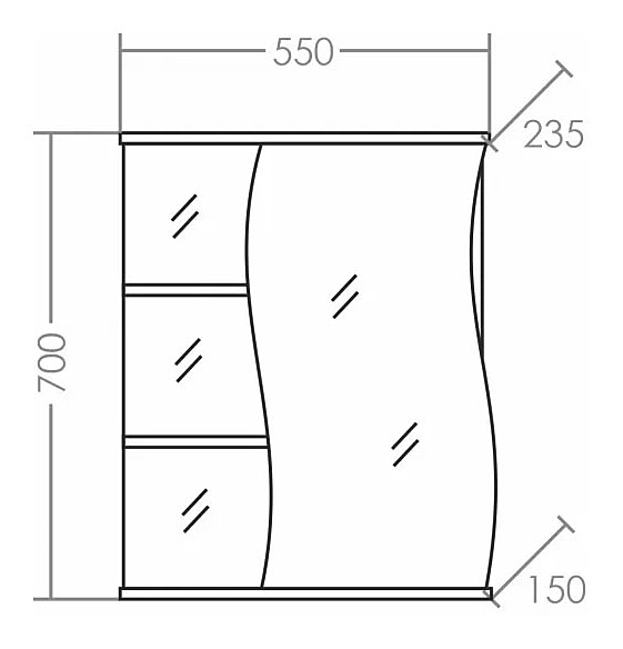 Шкаф зеркальный СаНта Волна 55 правый, со светильником