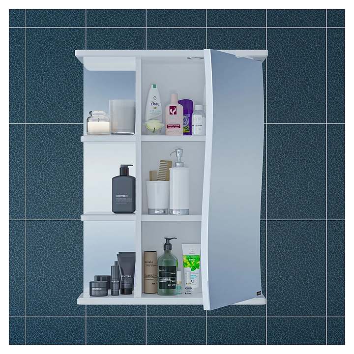 Зеркальный шкаф СаНта Волна 55 дополнит интерьер ванной комнаты. За счет подвесной конструкции изделие не занимает много места, что позволяет экономить пространство, а также облегчает уборку. Модель оснащена распашной дверцей, 2 полками в отделении, открытыми полками в боковой части шкафа, светильником и розеткой. Изделие выполнено из влагостойкой ЛДСП. Особенности: