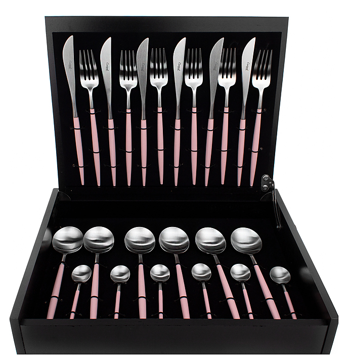 Набор столовых приборов CUTIPOL Goa GO.006 PK 24 шт., матовая сталь, розовые ручки