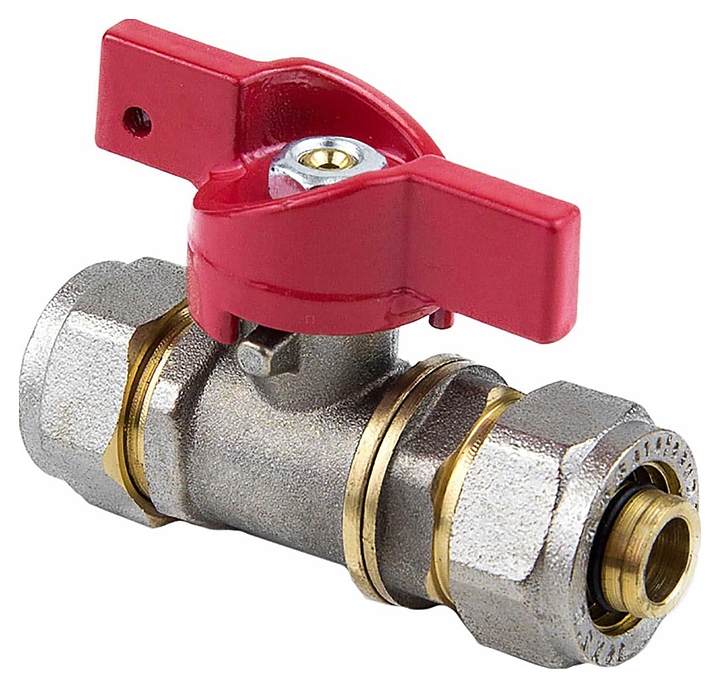 Кран шаровой Aquasfera 027-8787, PN 1,6 МПа, ДУ 20 обжим - ДУ 20 обжим, 1018-03 EURO неполнопроходной латунный с бабочкой