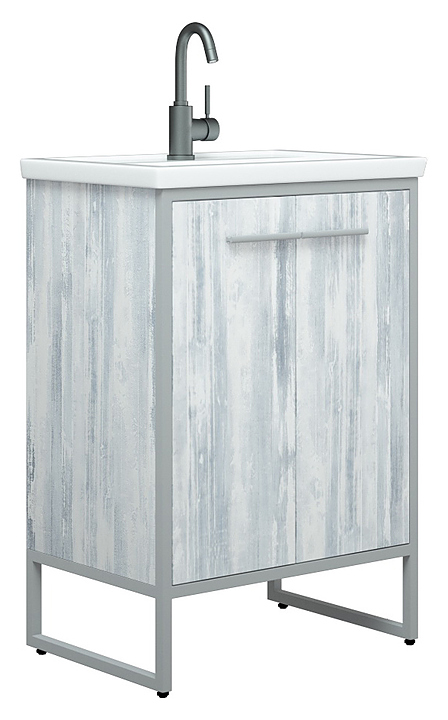 Тумба Corozo Айрон 60 SD-00000308 выполнена в современном, лаконичном стиле и отлично дополнит интерьер любой ванной комнаты. Модель оснащена 2 распашными фасад-дверцами, внутри которых находятся полки, где удобно разместить все необходимые личные принадлежности и элементы декора. Напольная конструкция обеспечивает легкий монтаж и не требует специального ремонта в помещении. Корпус изделия выполнен из металла, боковины и фасады - из ЛДСП. Тумба может использоваться вместе с раковиной Фостер 600 004025. Особенности: