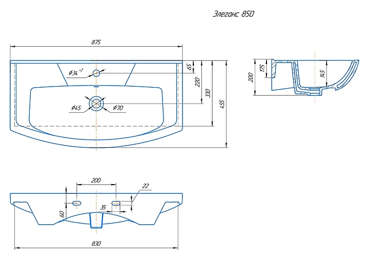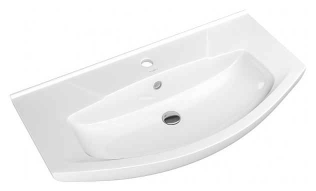 Раковина Kirovit Элеганс 85 выполнена в современном стиле. Встраиваемая конструкция позволяет экономить место в ванной комнате для хранения туалетных принадлежностей. Широкие задняя и боковые поверхности позволяют свободно разместить на умывальнике мыльницу, стакан для зубных щеток и другие аксессуары. Изделие выполнено из санфарфора, который обладает повышенной прочностью и устойчивостью к негативным внешним факторам, а так же долгое время сохраняет идеальную белизну и не впитывает запахи и грязь. Раковина приобретается только в комплекте с тумбой Corozo Фудзи 85 SP-00000455, Венеция 85 SD-00000345. В комплект поставки входит хромированное кольцо для переливного отверстия. Особенности: