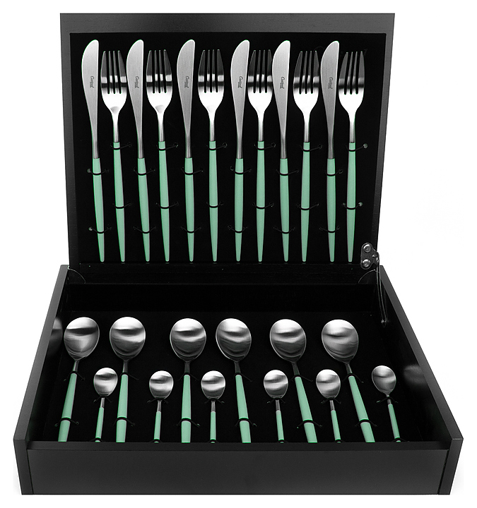 Набор столовых приборов CUTIPOL Mio MI.006 CE 24 шт., матовая сталь, ручки цвета морской волны