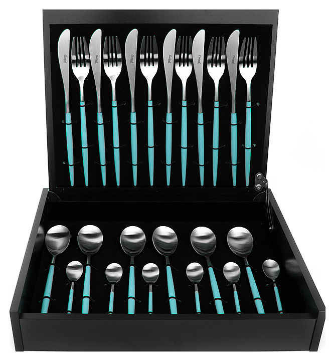 Набор столовых приборов CUTIPOL Mio MI.006 T 24 шт., матовая сталь, бирюзовые ручки