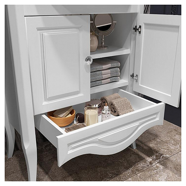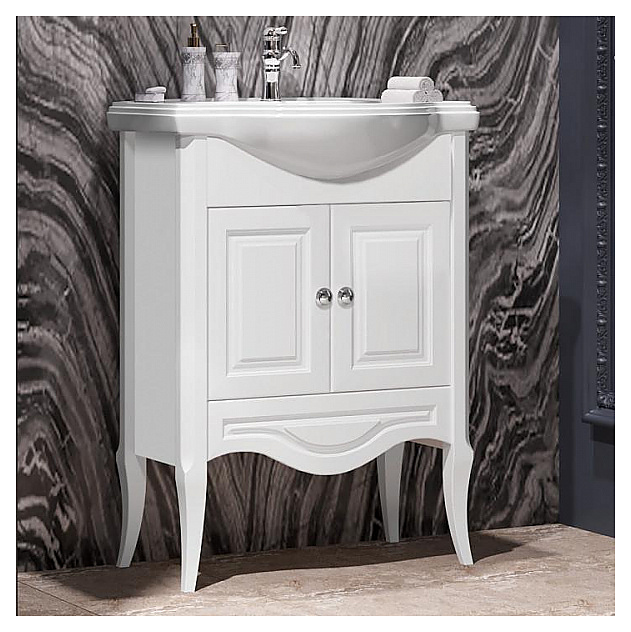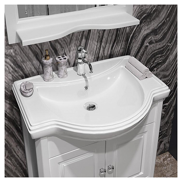 Тумба OPADIRIS Брунелла 65 00-00000474 выполнена в классическом стиле. Благодаря изящной отделке и классическим формам мебель станет украшением любой ванной комнаты. Модель оснащена 2 распашными фасад-дверцами, внутри которых находится полка и выдвижным ящиком в нижней части тумбы, где удобно хранить необходимые в ванной комнате личные принадлежности, аксессуары и элементы декора, раковина имеет слив-перелив и одно отверстие для смесителя, расположенное по центру. Корпус изделия выполнен из дерева. Тумба приобретается только в комплекте с раковиной KIROVIT Классик 650 003924. Раковина со смесителями в комплект поставки не входят и приобретаются отдельно. Тумба является частью гарнитура для ванной комнаты Брунелла белый матовый. Дополнительные характеристики: