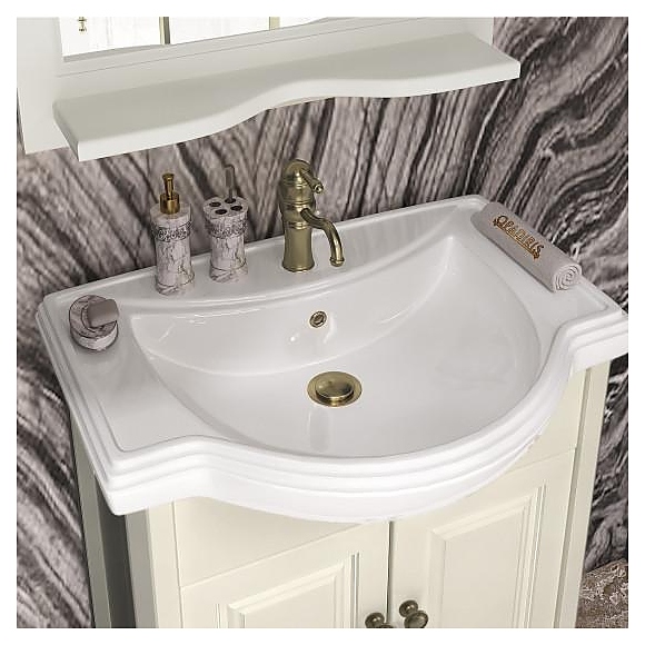 Тумба OPADIRIS Брунелла 65 00-00003863 выполнена в классическом стиле. Благодаря изящной отделке и классическим формам мебель станет украшением любой ванной комнаты. Модель оснащена 2 распашными фасад-дверцами, внутри которых находится полка и выдвижным ящиком в нижней части тумбы, где удобно хранить необходимые в ванной комнате личные принадлежности, аксессуары и элементы декора, раковина имеет слив-перелив и одно отверстие для смесителя, расположенное по центру. Корпус изделия выполнен из дерева. Тумба приобретается только в комплекте с раковиной KIROVIT Классик 650 003924. Раковина со смесителями в комплект поставки не входят и приобретаются отдельно. Тумба является частью гарнитура для ванной комнаты Брунелла слоновая кость. Дополнительные характеристики:
