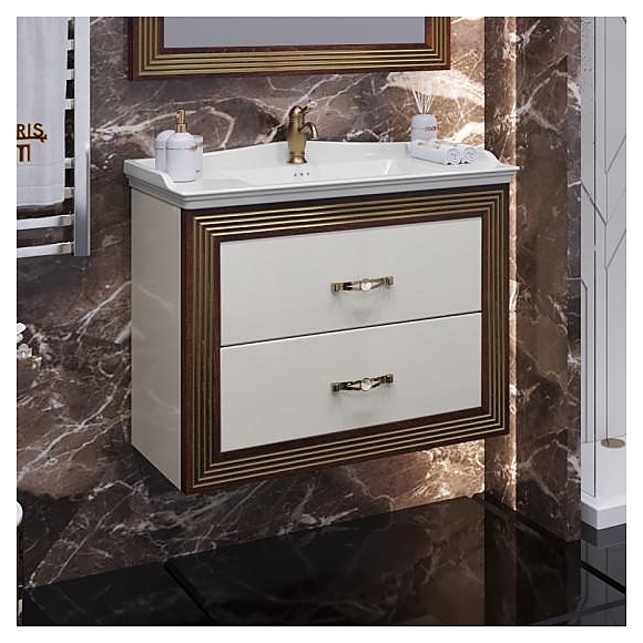 Тумба подвесная под раковину OPADIRIS Карат 80 00-00003520, бежевый глянец / золото