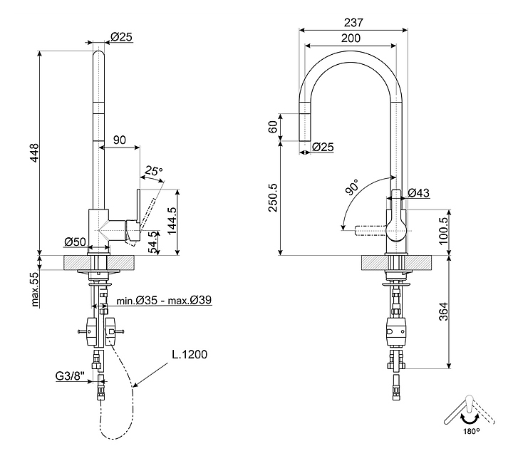 Смеситель SMEG MID2MN используется в частных домах, квартирах, офисах, отелях, гостиницах и на различных предприятиях совместно с мойками. Модель выполнена из матовой латуни. Особенности:
