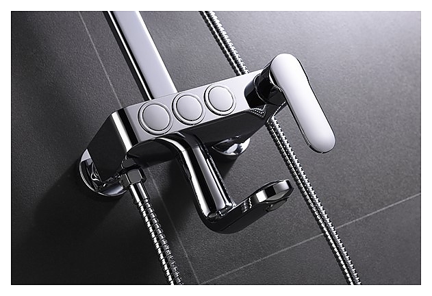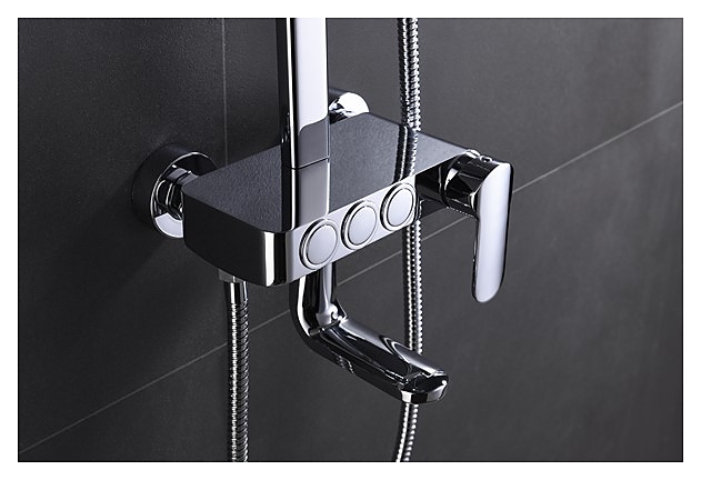 Душевая система Kaiser Estilo 62182 предназначена для использования в ванных помещениях для подачи горячей и холодной воды. Модель оснащена коротким поворотным изливом, душевым гарнитуром, включающим в себя верхний душ, регулируемую по высоте душевую штангу, ручную лейку с душевым шлангом и держатель для ручной лейки, а также керамическим картриджем, обеспечивающим плавный ход рычага смесителя, контроль и точность при выборе напора и температуры воды. Изделие выполнено из высококачественной латуни, отличающейся прочностью, долговечностью и устойчивостью к перепадам температур. Особенности: