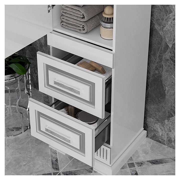 Шкаф-пенал OPADIRIS Оникс Z0000005504 выполнен в классическом, лаконичном стиле и отлично дополнит интерьер любой ванной комнаты. Модель оснащена распашной фасад-дверцей, за которой находятся полки и 2 небольшими выдвижными ящиками, где удобно хранить необходимые в ванной комнате принадлежности и элементами декора. Напольная конструкция обеспечивает легкий монтаж и не требует специального ремонта в помещении. Корпус изделия выполнен из МДФ, материал боковых сторон - ЛДСП, раковина - фаянс. Пенал может использоваться в составе гарнитура для ванной комнаты серии Оникс. Дополнительные характеристики: